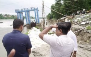 গতকাল ভোররাতে বালুরঘাট পুরসভার ১৩ নম্বর ওয়ার্ডের চকভৃগু এলাকায় ড্যামের একাংশ ভেঙ্গে যায়। আর তাতেই হু হু করে জল ঢুকতে শুরু করে। এই ভাঙ্গনে ভেঙ্গে গিয়েছে সুইচ গেটের একাংশ। যে কোনো সময় বড়সড় দুর্ঘটনা ঘটতে পারে বলে আতঙ্কে ঘুম উড়েছে স্থানীয় মানুষের। বিষয়টি জানার পর সেখানে যান স্থানীয় বিজেপি সাংসদ সুকান্ত মজুমদার। পরিদর্শন করার পর তিনি এক্স হ্যান্ডেলে লেখেন, আত্রেয়ী নদীর উপর কংক্রিট নির্মিত লো- ড্যাম ভেঙ্গে পড়ার পর সরাসরি ঘটনাস্থলে পৌঁছে সম্পূর্ণ পরিস্থিতি পর্যবেক্ষণ করলাম এবং নদীর পাশে বসবাসকারী মানুষজনের সঙ্গে কথা বললাম। আকস্মিক এমন দুর্ঘটনায় তাঁরা যথেষ্ট আতঙ্কিত এবং উদ্বিগ্ন। মাননীয়া ব্যর্থ মুখ্যমন্ত্রী মমতা বন্দ্যোপাধ্যায় তো এই সময় উত্তরবঙ্গেই রয়েছেন, তাঁকে আমি আবেদন করছি – তিনি যেন বালুরঘাটে এসে সরাসরি দেখে যান তাঁর অনুপ্রেরণায় দুর্নীতির উন্নয়ন কিভাবে হেলে পড়ছে।”