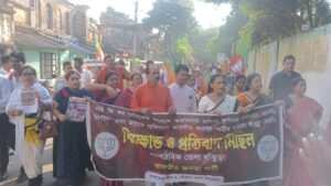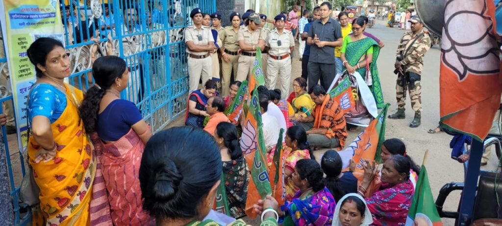 সোমনাথ বরাট, আমাদের ভারত, বাঁকুড়া, ১৭ আগস্ট: আর জি কর হাসপাতালে মহিলা চিকিৎসক পড়ুয়ার উপর পাশবিক অত্যাচার ও খুনের ঘটনায় পুলিশ মন্ত্রী তথা মুখ্যমন্ত্রী মমতা বন্দ্যোপাধ্যায়ের পদত্যাগের দাবিতে আজ বাঁকুড়া সদর থানার সামনে বিক্ষোভ অবস্থান করেন বিজেপির মহিলা মোর্চা। আজ বিকেলে মহিলা মোর্চার পক্ষ থেকে মিছিলের আয়োজন করা হয়। মিছিল বাঁকুড়া থানায় এসে উপস্থিত হয়।