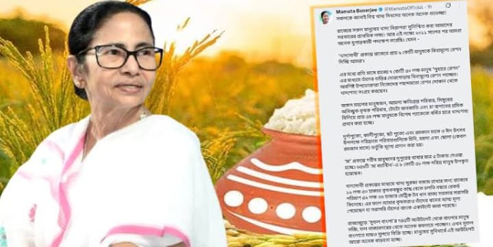 ‘খাদ্যসাথী’ প্রকল্পে রাজ্যের প্রায় ৯ কোটি মানুষকে বিনামূল্যে রেশন দিচ্ছি আমরা। এর মধ্যে প্রতি মাসে রাজ্যে ৭ কোটি ৫০ লক্ষ মানুষ “দুয়ারে রেশন” এর মাধ্যমে তাঁদের বাড়ির দোরগোড়ায় বিনামূল্যে রেশন পাচ্ছেন। অবশিষ্ট উপভোক্তারা নিজেদের পছন্দমতো রেশন দোকান থেকে খাদ্যশস্য সংগ্রহ করছেন।