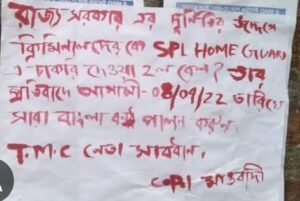 সোমনাথ বরাট, আমাদের ভারত, বাঁকুড়া, ২৭ এপ্রিল: “মাওবাদী নামাঙ্কিত পোস্টার ঘিরে ব্যাপক চাঞ্চল্য ছড়িয়ে পড়ে তালডাংরায়। সিভিক প্রধান এবার তোমাদের পালা।” এভাবে সিভিক কর্মী ও পঞ্চায়েত প্রধানদের হুঁশিয়ারি দিয়ে পোস্টার পড়ার ঘটনায় ব্যাপক চাঞ্চল্য ছড়িয়েছে তালডাংরায়। সাদা কাগজের ওপর লাল কালিতে হাতে লেখা পোসটার লক্ষ্য করা যায় তালডাংরা বাজারের বেশ কয়েকটি জায়গায়। পোস্টারগুলির নিচে সিপিআই (মাওবাদী) লেখা রয়েছে।