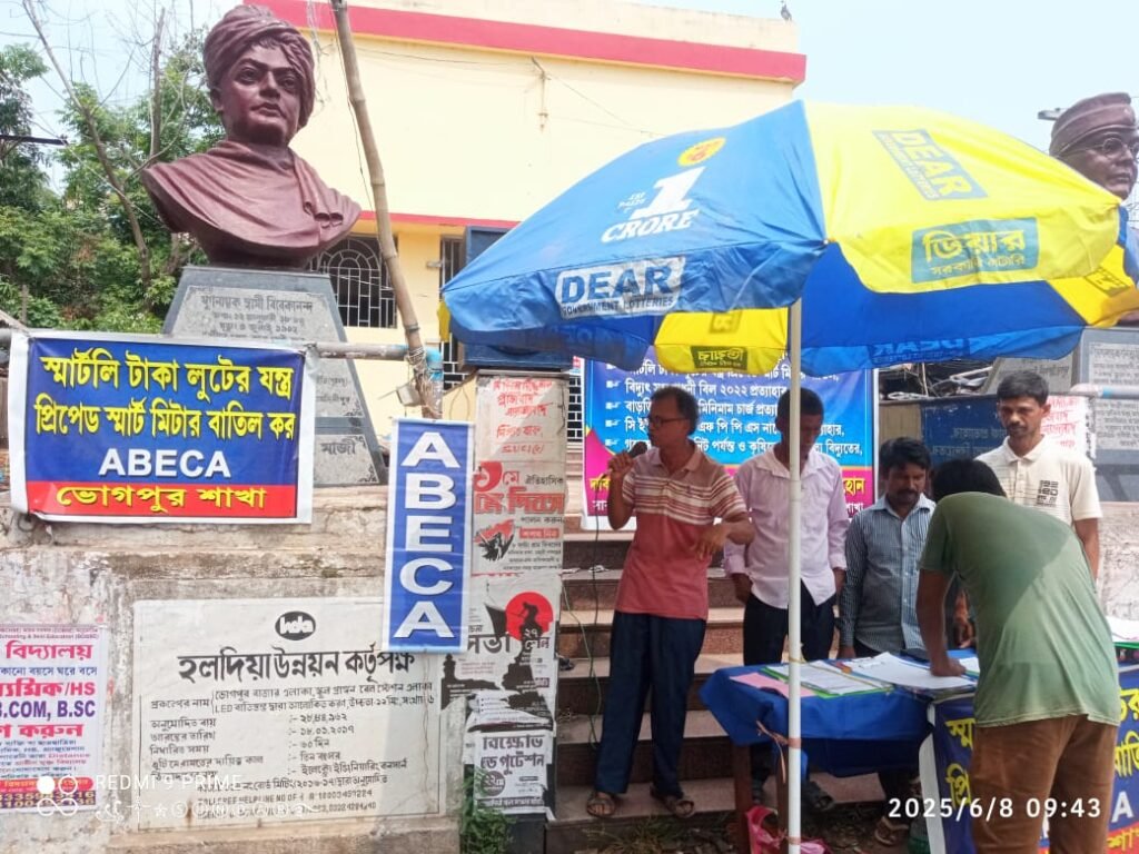 পার্থ খাঁড়া, আমাদের ভারত, পূর্ব মেদিনীপুর, ৮ জুন: বিদ্যুতের বেসরকারিকরণ ও স্মার্ট প্রিপেড মিটার লাগানো বন্ধ, বর্ধিত ফিক্সড ও মিনিমাম চার্জ প্রত্যাহার, গৃহস্থদের ক্ষেত্রে মাসে ২০০ ইউনিট পর্যন্ত বিদ্যুতে ছাড়, কৃষিতে বিনামূল্যে বিদ্যুৎ ও এলপিএসসি (জরিমানা) মুকুব, অন্যায়ভাবে লোডের ভিত্তিতে অতিরিক্ত সিকিউরিটি ডিপোজিট আদায় না করে গ্রাহকদের জমা রাখা সিকিউরিটির উপর আইনসম্মতভাবে সুদের টাকা ফেরত সহ বিদ্যুৎ গ্রাহকদের গুরুত্বপূর্ণ কতগুলি দাবি নিয়ে অল ইন্ডিয়া ইলেকট্রিসিটি কনজিউমার্স অ্যাসোসিয়েশনের আহ্বানে কেন্দ্রীয় বিদ্যুৎমন্ত্রীকে স্মারকলিপি দেওয়ার উদ্দেশ্যে গণস্বাক্ষর সংগ্রহের কর্মসূচি চলছে।