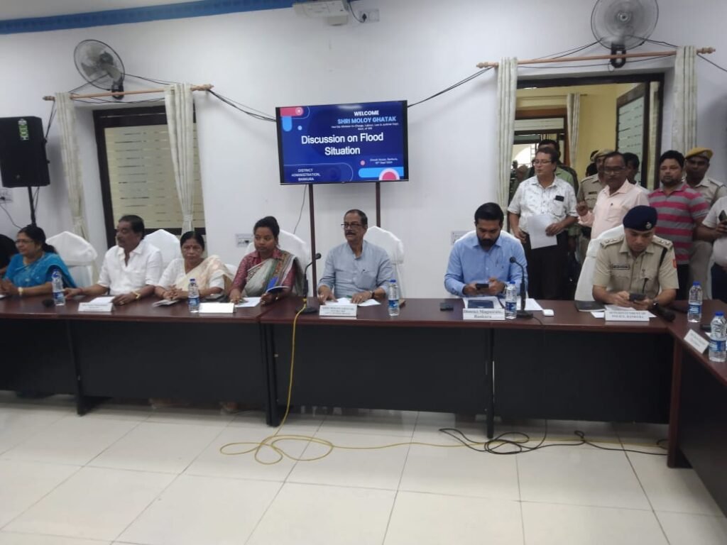 মলয় ঘটক জানান, জলমগ্ন ৬টি ব্লকের ১২৭০৯টি পরিবারকে ত্রাণ সামগ্রী দেওয়া হয়েছে। পাশাপাশি ২০৯টি ত্রাণ শিবির খোলা হয়েছে। সেখানে বিধায়ক পঞ্চায়েত, পঞ্চায়েত সমিতি ও জেলা পরিষদের সদস্যরা দুর্গত মানুষের জন্য খাবারের ব্যবস্থা করছেন। মঙ্গলবার থেকে বিপর্যয় মোকাবিলা টিম প্রস্তুত রয়েছে। ডিএম, এসপি সব কিছু নজরদারি করছেন। এছাড়াও জেলায় তিন হাজারের বেশি বাড়ি ভেঙে পড়েছে। তার মধ্যে ৬২০টি বাড়ি একেবারে ভেঙ্গে পড়েছে এবং ২৪০২টি আংশিক ক্ষতিগ্রস্থ হয়েছে। সকলের জন্য ত্রিপল দেওয়া হয়েছে। সম্পূর্ণ হিসেব না পেলেও ফসলের ব্যাপক ক্ষতি হয়েছে বলে তিনি জানান।