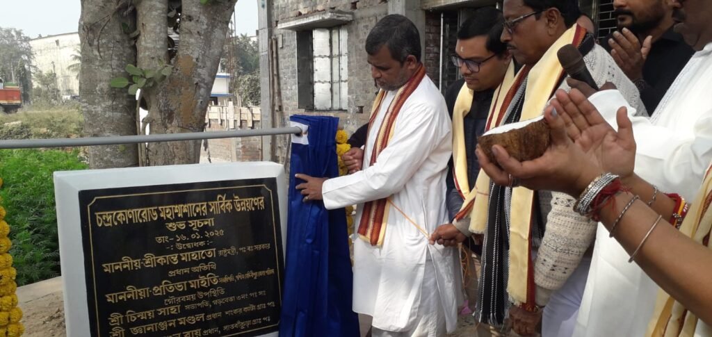 পার্থ খাঁড়া, আমাদের ভারত, পশ্চিম মেদিনীপুর, ১৮ জানুয়ারি: পশ্চিম মেদিনীপুর জেলার গড়বেতা তিন নম্বর ব্লকের চন্দ্রকোনারোড মহাশ্মশানের আনুষ্ঠানিক সূচনা উদ্বোধন হলো বৃহস্পতিবার। জানা গিয়েছে, চন্দ্রকোনারোড হ’ য’ ব’ র’ ল’ সোসাইটি, মহাশ্মশান ও কালী মন্দির উন্নয়ন কমিটির যৌথ উদ্যোগে এই উদ্যোগ নেওয়া হয়। এদিন প্রদীপ প্রজ্জ্বলনের মধ্য দিয়ে অনুষ্ঠানের শুভ সূচনা করেন শালবনী বিধানসভা কেন্দ্রের বিধায়ক তথা রাজ্যের প্রতিমন্ত্রী শ্রীকান্ত মাহাতো।