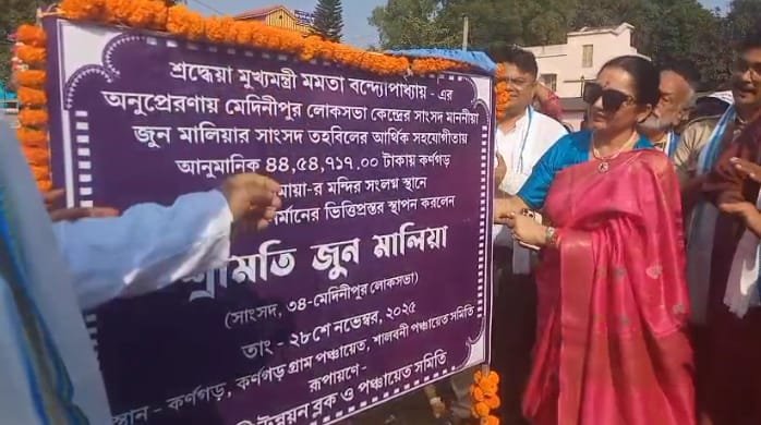পার্থ খাঁড়া, আমাদের ভারত, পশ্চিম মেদিনীপুর, ২৮ নভেম্বর: এবার শালবনী থানার কর্নগড় মহামায়া মন্দিরে বিশ্রামাগার তৈরি করবেন মেদিনীপুরের সাংসদ জুন মালিয়া। শুক্রবার মহামায়া মন্দির সংলগ্ন এলাকায় বিশ্রামাগারের শিলান্যাস করেন সাংসদ। উপস্থিত ছিলেন সাংসদ জুন মালিয়া ছাড়াও শালবনী পঞ্চায়েত সমিতির সভাপতি নেপাল সিংহ, মেদিনীপুর পুরসভার চেয়ারম্যান সৌমেন খান সহ বিশিষ্টজনেরা।