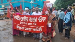 সোমনাথ বরাট, আমাদের ভারত, বাঁকুড়া, ১১ সেপ্টেম্বর: উদ্বাস্তুদের পাট্টা দেওয়া জমির পর্চা, জমির চরিত্র বদল, কলোনিগুলিকে নিয়ে আলাদা পঞ্চায়েত গঠন সহ ১৯ দফা দাবিতে আজ জেলা ভূমি ও ভূমি সংস্কার দফতরে ডেপুটেশন দিল সম্মিলিত কেন্দ্রীয় বাস্তুহারা পরিষদ। এদিন সংগঠনের সদস্যরা একটি মিছিল করে জেলা ভূমি ও ভূমি সংস্কার আধিকারিকের অফিসের সামনে হাজির হন। মিছিলের পুরোভাগে ছিলেন সংগঠনের রাজ্য সভাপতি জীবন রঞ্জন ভট্টাচার্য, রাজ্য নেতৃত্ব সুধাংশু মজুমদার, সুজয় চৌধুরী, প্রাক্তন বিধায়ক অজিত রায় সহ অনেকে।