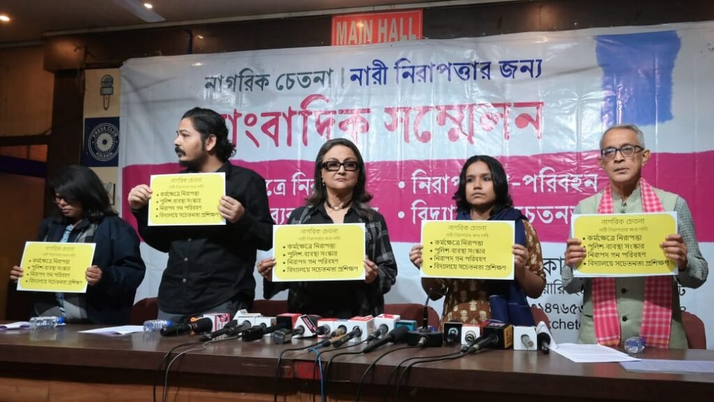 আমাদের ভারত, ৯ জানুয়ারি: নারী নিরাপত্তা সুনিশ্চিত করতে মুখ্যমন্ত্রী মমতা বন্দ্যোপাধ্যায়কে চিঠি দিল নাগরিক চেতনা মঞ্চ। বৃহস্পতিবার এ নিয়ে কলকাতা প্রেসক্লাবে সাংবাদিক বৈঠক করেন অপর্ণা সেন এবং নাগরিক চেতনা মঞ্চের সদস্যরা। খোলা চিঠি তুলে ধরা হয় সকলের সামনে। সেখানে অপর্ণা সেন বলেন যে সরকারই আসুক না কেন, আর যে দলেরই সরকার হোক না কেন তাদের বলতে হবে যে এভাবে চলবে না, আমরা পরিকাঠামোগত ও পদ্ধতিগত দীর্ঘমেয়াদি কিছু বদল চাইছি। নারীদের নিরাপত্তা সুনিশ্চিত করা সম্ভব। মুখ্যমন্ত্রীর নবান্নের পাশাপাশি রাজ্য সরকারের বিভিন্ন দপ্তরকেও চিঠি পাঠানো হয়েছে বলে জানানো হয়।