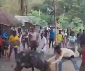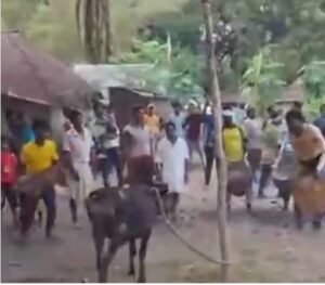 সোমনাথ বরাট, আমাদের ভারত, বাঁকুড়া, ২৪ অক্টোবর: বাঁকুড়া জেলার গ্রামাঞ্চল ভাইফোঁটার দিন সন্ধে থেকে মেতে ওঠে ‘গরু খুটা’ উৎসবে। পশুর শুকানো চামড়া শুকিয়ে নাগারা বাজিয়ে ও সকলে ঘিরে দাঁড়িয়ে চিৎকার করে গরুকে উত্তেজিত করা হয়। সেই উত্তেজিত গরুর সঙ্গে আনন্দ করা হয়।