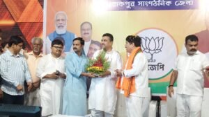 আমাদের ভারত, ৬ এপ্রিল: লোকসভা নির্বাচনের আগে তৃণমূলের ঘরে ভাঙন ধরালো বিজেপি। শুক্রবার নৈহাটির সিং ভবনে দলীয় কার্যালয়ে ঋষি বঙ্কিম ব্লক-১ তৃণমূল সভাপতি রানা দাশগুপ্ত এবং জগদ্দল বিধানসভা কেন্দ্রের তৃণমূলের সহ-সভাপতি শ্যামল তলাপত্র, শহিদ পরিবারের সুমিত্রা মন্ডল সদলবলে বিজেপিতে যোগ দিলেন। সেই সঙ্গে এদিন বীজপুর ও আমডাঙ্গা থেকে বিভিন্ন দলের কর্মীরা বিজেপিতে যোগ দিয়েছেন। এদিন রাজ্যের বিরোধী দলনেতা শুভেন্দু অধিকারী তাদের হাতে দলীয় পতাকা তুলে দেন।