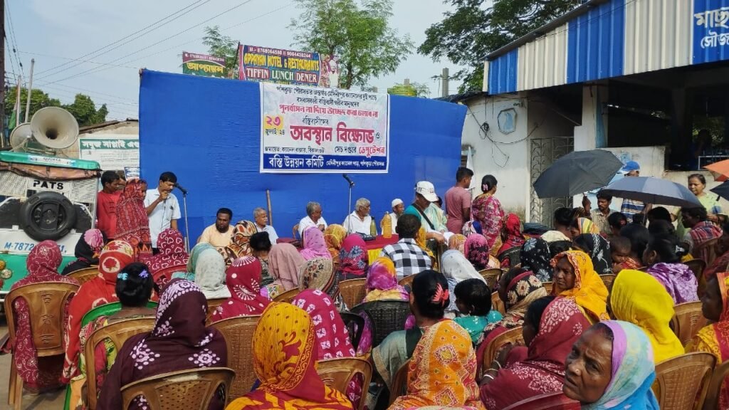 পার্থ খাঁড়া, আমাদের ভারত, পূর্ব মেদিনীপুর, ২৩ জুলাই: ‘পুনর্বাসন ছাড়া উচ্ছেদ নয়’ এই দাবিতে আজ পাঁশকুড়া মেদিনীপুর ক্যানেল পাড় বস্তি উন্নয়ন কমিটির ডাকে পাঁচ শতাধিক বস্তিবাসীদের অবস্থান বিক্ষোভ অনুষ্ঠিত হয় পাঁশকুড়া ক্যানেল বাজারে। পুনর্বাসনের দাবিতে পাঁশকুড়া সেচ দপ্তরের এসডিও’র কাছে ডেপুটেশন দেওয়া হয়।