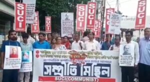 SUCI, Jalpaiguri, পলেহগাঁওয়ে জঙ্গি হামলায় ঘটনার প্রতিবাদ, জলপাইগুড়িতে মিছিল এসইউসিআই- এর