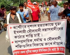 Workers, Bankura, কাশ্মীরের ঘটনায় যুক্ত সন্ত্রাসবাদীদের কঠোর শাস্তির দাবিতে বাঁকুড়ায় পথে মুটিয়া শ্রমিকরা