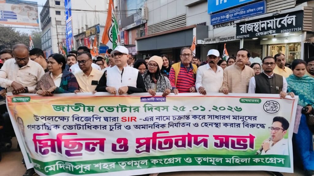 TMC, Midnapur, জাতীয় ভোটার দিবসে মেদিনীপুরে তৃণমূলের ‘ধিক্কার দিবস’