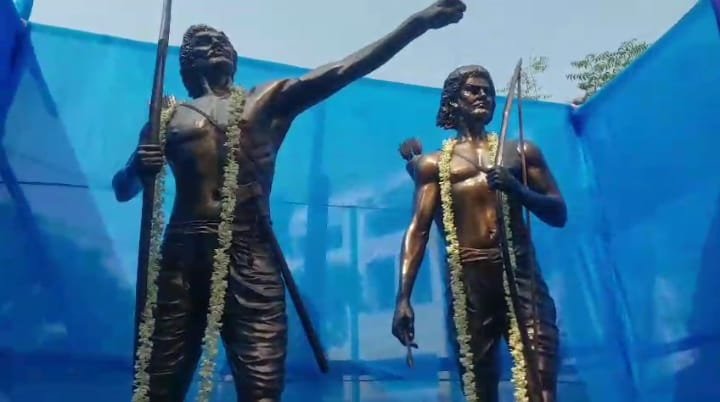 Freedom fighters, Vidyasagar University, বিদ্যাসাগর বিশ্ববিদ্যালয়ে আদিবাসী স্বাধীনতা সংগ্রামীদের প্রস্তর মূর্তি উন্মোচন