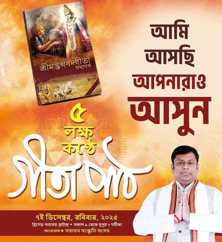 আমাদের ভারত, ৬ ডিসেম্বর: ব্রিগেডের মাঠে আবার লক্ষ কণ্ঠে গীতাপাঠের আয়োজন। তবে এবার এর ব্যাপ্তি [...]