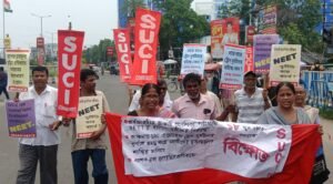 SUCI, Tamluk, বার বার হওয়া ট্রেন দুর্ঘটনা, ডাক্তারি প্রবেশিকা পরীক্ষা নিটের দুর্নীতির বিরুদ্ধে তমলুকে বিক্ষোভ এসইউসিআই’য়ের