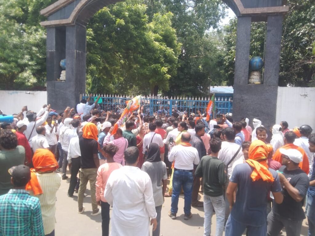 সোমনাথ বরাট, আমাদের ভারত, বাঁকুড়া, ১৫ জুন: গতকাল গভীর রাতে বিজেপির জেলা কার্যালয়ের দরজার তালা ভেঙ্গে নথিপত্র তছনছ ও ভাঙ্গচুর চালানোর অভিযোগ উঠেছে পুলিশের বিরুদ্ধে। আগাম না জানিয়ে বাঁকুড়া সদর থানার পুলিশ একাজ করেছে বলে অভিযোগ। এই খবর পেয়ে রাতেই দলীয় কার্যালয়ে হাজির হয়ে পুলিশের এই আচরণের বিরুদ্ধে বিক্ষোভ দেখাতে থাকেন বিজেপির নেতা-কর্মীরা। যত সকাল হতে থাকে ততই বিজেপি কর্মী ও সমর্থকদের ভিড় বাড়তে থাকে। এই ঘটনাকে কেন্দ্র করে উত্তাল হয়ে ওঠে বাঁকুড়া শহরের বাণিজ্য কেন্দ্র নতুনগঞ্জ। শনিবার রাত দু’টো নাগাদ এই ঘটনাটি ঘটে নতুনগঞ্জে বিজেপির বাঁকুড়া সাংগঠনিক জেলা কার্যালয়ে।