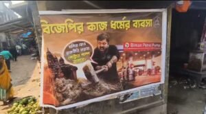 অন্যদিকে পুরশুড়ার বিজেপি বিধায়ক বিমান ঘোষের বিরুদ্ধে পোস্টারে লেখা রয়েছে, ‘বিজেপির কাজ ধর্মের ব্যবসা, মন্দির ভেঙ্গে রাজনীতি করব, পেট্রল পাম্প বানাবো’। যদিও বিমানবাবু পোস্টার সাঁটার একটি সিসিটিভি ফুটেজ প্রকাশ করেছেন। অভিযোগের তির তৃণমূলের দিকে। এই ঘটনায় প্রতিবাদ জানিয়ে বিজেপি নেতা ও নেত্রীরা পুরশুড়া থানায় বিক্ষোভ দেখান।