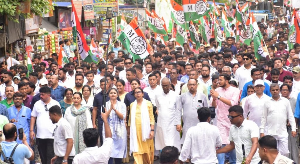 পার্থ খাঁড়া, আমাদের ভারত, পশ্চিম মেদিনীপুর, ১২ জুলাই: ২১ জুলাইয়ের শহিদ সমাবেশের আগে মিছিল ও প্রস্তুতি ঘিরে উন্মাদনা দেখল মেদিনীপুর শহরের মানুষ। মেদিনীপুর সাংগঠনিক জেলা তৃণমূলের উদ্যোগে মিছিল ও সভায় উপস্থিত ছিলেন রাজ্য যুব তৃণমূলের সভানেত্রী তথা সাংসদ সায়নী ঘোষ, তৃণমূল আইটি সেলের সভাপতি দেবাংশু ভট্টাচার্য, রাজ্য তৃণমূল ছাত্র পরিষদের সভাপতি তৃণাঙ্কুর ভট্টাচার্য, মেদিনীপুরের সাংসদ জুন মালিয়া, জেলা যুব তৃণমূলের সভাপতি নির্মাল্য চক্রবর্তী, জেলা তৃণমূলের সভাপতি সুজয় হাজরা সহ জেলার প্রথম সারির নেতারা।