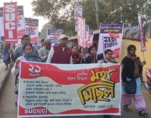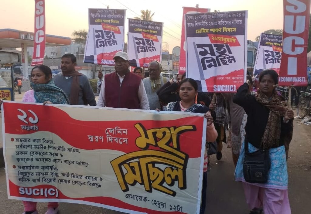 পার্থ খাঁড়া, আমাদের ভারত, পূর্ব মেদিনীপুর, ১৯ জানুয়ারি: মেদিনীপুর হাসপাতালে প্রসূতির মৃত্যুর ঘটনার প্রতিবাদ, আর জি কর কাণ্ডের দ্রুত ন্যায় বিচার, সারা রাজ্যে জাল ওষুধের কারবার অবিলম্বে বন্ধ, স্বাস্থ্য ও শিক্ষা ব্যবস্থায় দুর্নীতি বন্ধ, নিত্যপ্রয়োজনীয় জিনিসপত্রের আকাশছোঁয়া মূল্যবৃদ্ধি রোধ, স্মার্ট মিটার বাতিলের দাবি ও রাজ্যে ৮২০৭টি স্কুল বন্ধের প্রতিবাদ সহ জনজীবনের একাধিক দাবিতে ২১শে জানুয়ারি এস ইউ সি আই (কমিউনিস্ট)এর পক্ষ থেকে কলকাতায় মহামিছিলের ডাক দেওয়া হয়েছে। ওই কর্মসূচিকে সফল করবার আহ্বান জানিয়ে আজ পূর্ব মেদিনীপুর জেলার গেটওয়ে মেছেদা কেন্দ্রীয় বাসস্ট্যান্ডে ক্ষুদিরাম মূর্তির পাদদেশে সকাল থেকেই প্রচার অভিযানে সামিল হন দলের কর্মী-সমর্থকরা। কর্মসূচিতে উপস্থিত ছিলেন দলের পূর্ব মেদিনীপুর উত্তর সাংগঠনিক জেলা কমিটির সম্পাদক মন্ডলীর সদস্য সুব্রত দাস, নারায়ণ চন্দ্র নায়ক প্রমুখ।