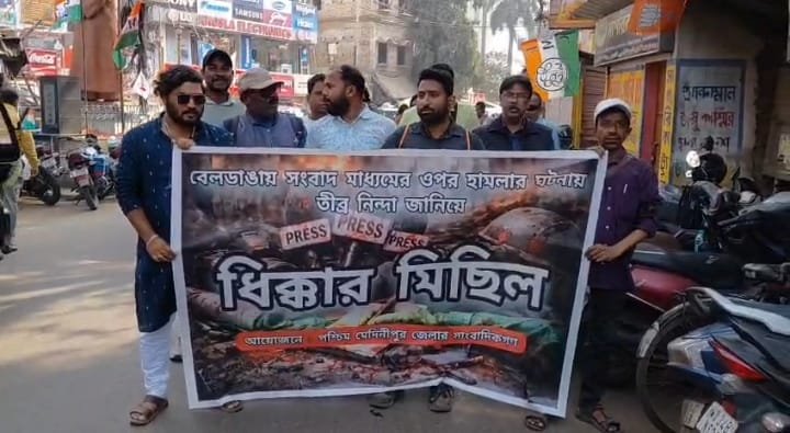 পার্থ খাঁড়া, আমাদের ভারত, পশ্চিম মেদিনীপুর, ১৭ জানুয়ারি: বেলডাঙায় মহিলা সাংবাদিকের উপর হামলার প্রতিবাদে মেদিনীপুরে ধিক্কার মিছিল করলো সাংবাদিকরা।