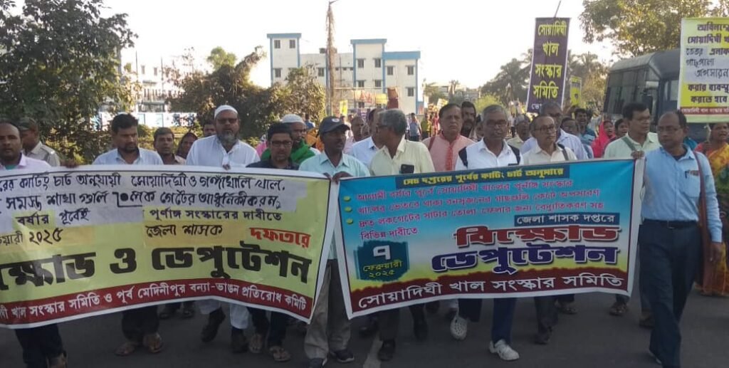 গত ৩ অক্টোবর, ২০২৪ ওই খাল সংস্কারের দাবিতে এলাকার ৫ শতাধিক বানভাসি মানুষ তমলুকের সেচ দপ্তরের অফিসে বিক্ষোভ ও ডেপুটেশনের কর্মসূচিতে সামিল হন। ফলস্বরূপ মজে যাওয়া খালটি জেলা শাসক, অতিরিক্ত জেলা শাসক(উন্নয়ন), মহকুমা শাসক, সেচ দপ্তরের এক্সিকিউটিভ ইঞ্জিনিয়ার প্রমুখরা পরিদর্শন করেন। এরপর জেলা শাসক দপ্তরের কনফারেন্স হলে উচ্চপর্যায়ের এক বৈঠকে রাজ্য সরকারের খনিজ দপ্তরের WBMDTCL(ওয়েস্ট বেঙ্গল মিনারেল ডেভেলপমেন্ট ট্রেডিং কোম্পানি লিমিটেড) সংস্থার মাধ্যমে ‘পালিত ব্রিক ফিল্ড’ নামে এক এজেন্সিকে দিয়ে খালটি পূর্ণাঙ্গ সংস্কার করা হবে বলে জেলা শাসক ঘোষণা করেন। আমরা ওই সভায় প্রস্তাব দিয়েছিলাম, খাল সংস্কারের পূর্বে সেচ দপ্তরের খালের পূর্ণাঙ্গ জায়গা জরিপ করে চিহ্নিত করে দিতে হবে। অনেক টালবাহানার পর সম্প্রতি খাল সংস্কারের সেই কাজ শুরু হয়েছে। গত ১৫ নভেম্বর, ২০২৪ থেকে খালটি সংস্কারের কথা থাকলেও তারপর প্রায় তিন মাস হতে চলল-এখনো একশো মিটার খালও সংস্কার হয়নি। সংস্কারের শুরু থেকেই সোয়াদিঘি লকগেট পার্শ্ববর্তী কাখর্দা গ্রাম পঞ্চায়েত এলাকার বেশ কিছু জায়গায় খালের ভেতরে থাকা একদল জবরদখলকারী ও তাদের সমর্থকরা সংস্কারের কাজে পদে-পদে বাধা সৃষ্টি করছে। এছাড়াও খালের ভেতরে থাকা বনসৃজনের গাছগুলিও এখনো কাটা হয়নি, যে কারণে খাল সংস্কারের মেশিন ঠিকমত কাজ করতে পারছে না। যে কারণে ঠিকাদারের লোকজন মাঝে-মধ্যে সংস্কার কাজ বন্ধ রেখে মেশিনপত্র তুলে নিয়ে চলে যেতে বাধ্য হচ্ছেন। অন্যদিকে স্থানীয় প্রশাসন ঝামেলায় জড়াতে না চেয়ে খালের ভেতরের অবৈধ কাঠামোগুলি সরানোর ব্যবস্থা না করে, যেখানে যতটুকু সংস্কার করা যায় ততটুকুই খাল কেটে যাওয়াতে এজেন্সিকে বাধ্য করছেন।