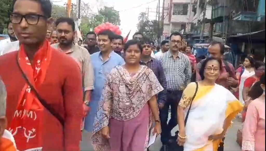 আমাদের ভারত, জলপাইগুড়ি, ১২ এপ্রিল: জলপাইগুড়ি লোকসভা কেন্দ্রের বাম ও কংগ্রেস জোট প্রার্থী দেবরাজ বর্মণের সমর্থনে মিছিল হলো শুক্রবার। মিছিলে উপস্থিত ছিলেন ডিওয়াইএফআই- এর রাজ্য সম্পাদিকা মীনাক্ষী বন্দ্যোপাধ্যায়। অন্যদিকে কংগ্রেসের জেলা নেতারা। শুক্রবার শহরের গান্ধী মূর্তির পাদদেশ থেকে প্রার্থীর সমর্থনে মিছিল শুরু হয়। মিছিল শুরুর আগে মহাত্মা গান্ধীর মূর্তিতে পুষ্পস্তবক দেন বাম ও কংগ্রেস নেতা কর্মীরা।