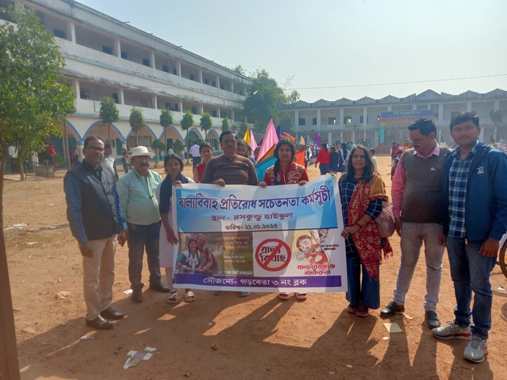 পার্থ খাঁড়া, আমাদের ভারত, পশ্চিম মেদিনীপুর, ২১ জানুয়ারি: বাল্যবিবাহ রোধ নিয়ে মঙ্গলবার পশ্চিম মেদিনীপুর জেলার গড়বেতা তিন নম্বর ব্লকের এক নম্বর অঞ্চলের রসকুণ্ড হাইস্কুলের ছাত্রীদের নিয়ে পদযাত্রার আয়োজন করা হয়।
