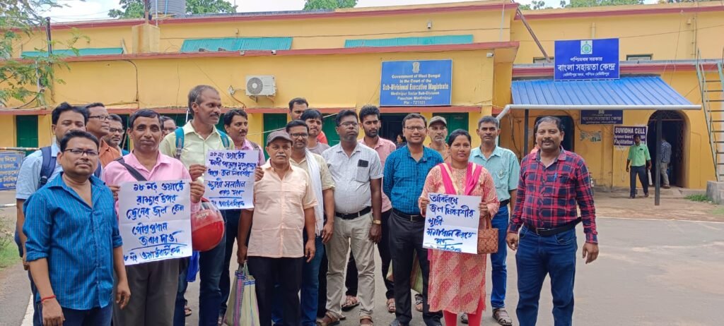 পার্থ খাঁড়া, আমাদের ভারত, পশ্চিম মেদিনীপুর, ২৮ জুন: শুক্রবার দুপুরে মেদিনীপুর পুরসভার ১৮ নম্বর ওয়ার্ডের বাসিন্দাদের পক্ষ থেকে মেদিনীপুর সদর মহকুমা শাসকের কাছে জমা জল যন্ত্রণা থেকে মুক্তি ও নিকাশী ব্যবস্থার সুষ্ঠু সমাধানের দাবিতে ডেপুটেশন দেওয়া হয়। মেদিনীপুর শহরের ১৮ নম্বর ওয়ার্ডের চাষি পাড়া এলাকার একটি গুরুত্বপূর্ণ রাস্তায় প্রায় এক মাসেরও বেশি সময় ধরে ২০০ ফুটের কাছাকাছি দৈর্ঘ্যের একটি অংশে নর্দমার জল এসে জমা হচ্ছে। অপরিকল্পিতভাবে একটি ড্রেন হঠাৎ করে তৈরি করার জন্য সেই ড্রেনে আসা সমস্ত নোংরা জল রাস্তার উপর জমা হচ্ছে এবং এলাকার পরিবেশকে দূষিত করছে। এই রাস্তা দিয়ে দুটি প্রাথমিক স্কুলের ছাত্র-ছাত্রীরা যাতায়াত করে। মেদিনীপুর খড়্গপুরের বিভিন্ন বিদ্যালয়ের ছাত্র-ছাত্রীরা যাতায়াত করে, সেই সঙ্গে প্রায় দেড় শতাধিক পরিবারের মানুষ এই রাস্তা দিয়ে নিত্যদিন যাতায়াত করেন। এছাড়াও এলাকার বাসিন্দা নন এমন বহু মানুষ এই গুরুত্বপূর্ণ রাস্তা দিয়ে যাতায়াত করেন।