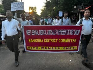 সোমনাথ বরাট, আমাদের ভারত, বাঁকুড়া, ৩১ আগস্ট: আরজিকর কান্ডে যুক্ত দুষ্কৃতিদের কঠোর শাস্তির দাবিতে বিক্ষোভ মিছিলে সামিল হলেন দুই শতাধিক মেডিক্যাল রিপ্রেজেন্টেটিভ। গতকাল সন্ধ্যার পর নূতনচটি কৃষি বাজার থেকে হাতে প্ল্যাকার্ড নিয়ে মিছিল করে মাচানতলা মোড়ে হাজির হয়ে বিক্ষোভ তাঁরা।