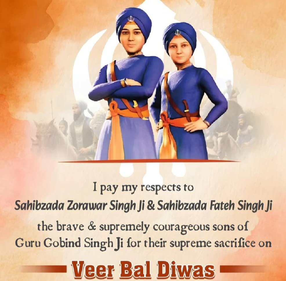 মঙ্গলবার শুভেন্দুবাবু এক্স হ্যাণ্ডেলে লিখেছেন, “বীর বাল দিবসে আমি সাহেবজাদা বাবা জোরওয়ার সিং জি এবং সাহেবজাদা বাবা ফতেহ সিং জি’কে শ্রদ্ধা জানাই; গুরু গোবিন্দ সিং জির ছোট দুই ছেলে তাদের মহান বীরত্ব, অদম্য সাহস এবং সর্বোচ্চ আত্মত্যাগের জন্য স্মরণীয়। অত্যন্ত কম বয়সে ১৭০৫ সালের ২৬শে ডিসেম্বর তাঁরা শহিদ হন।