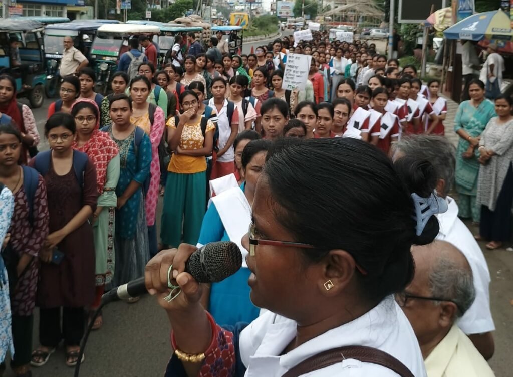 আমাদের ভারত, পূর্ব মেদিনীপুর, ১২ আগস্ট: আরজিকর হাসপাতালের কর্তব্যরত চিকিৎসক মৌমিতা দেবনাথকে ধর্ষণ ও নৃশংস খুনের বিচার বিভাগীয় তদন্ত, দোষীদের দৃষ্টান্তমূলক শাস্তি সহ তাম্রলিপ্ত গর্ভমেন্ট মেডিকেল কলেজে কর্তব্যরত স্টাফদের নিরাপত্তা, ছাত্র- চিকিৎসক ও নার্স হোস্টেলের নিরাপত্তা সুনিশ্চিতের দাবিতে আজ মেডিকেল সার্ভিস সেন্টারে পূর্ব মেদিনীপুর জেলা কমিটির পক্ষ থেকে তমলুক হাসপাতাল চত্বর সহ হাসপাতাল মোড়ে এক মৌন মিছিল হয়। মিছিলে প্রায় পাঁচ শতাধিক মেডিকেল ছাত্রছাত্রী চিকিৎসক অংশগ্রহণ গ্রহণ করেন। তারা হাসপাতালের সুপার ও কলেজের প্রিন্সিপালকে ওই সংক্রান্ত দাবিদাওয়া যুক্ত স্মারকলিপি জমা দেন।