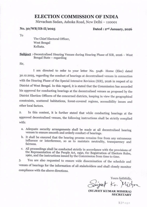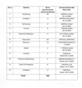 অশোক সেনগুপ্ত, আমাদের ভারত, ৩ জানুয়ারি: পশ্চিমবঙ্গে এসআইআর-এর চলতি পর্যায়ে ১২টি জেলায় শুনানীকেন্দ্র বিকেন্দ্রীকরণের আর্জিতে সায় দিল নির্বাচন কমিশন। এর জন্য অনুমোদন করা হয়েছে ১৬০টি স্থান।