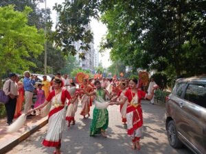 শুরুতেই গৌড়াধিপতি মহারাজা শশাঙ্ক প্রবর্তিত বাঙ্গালীর নববর্ষ (বঙ্গাব্দ ১৪৩২) আবাহন উৎসব উপলক্ষে ‘মঙ্গল শোভাযাত্রা’র আয়োজন করা হয়। ধ্বজ, মঙ্গলঘট, মৃদঙ্গ, শঙ্খ, করতাল, মন্দিরা, চামর, গৌড়ীয় নৃত্য ও কীর্তন সহযোগে শোভাযাত্রায় বাঙ্গালীর নববর্ষ উদ্যাপন করা হয়।