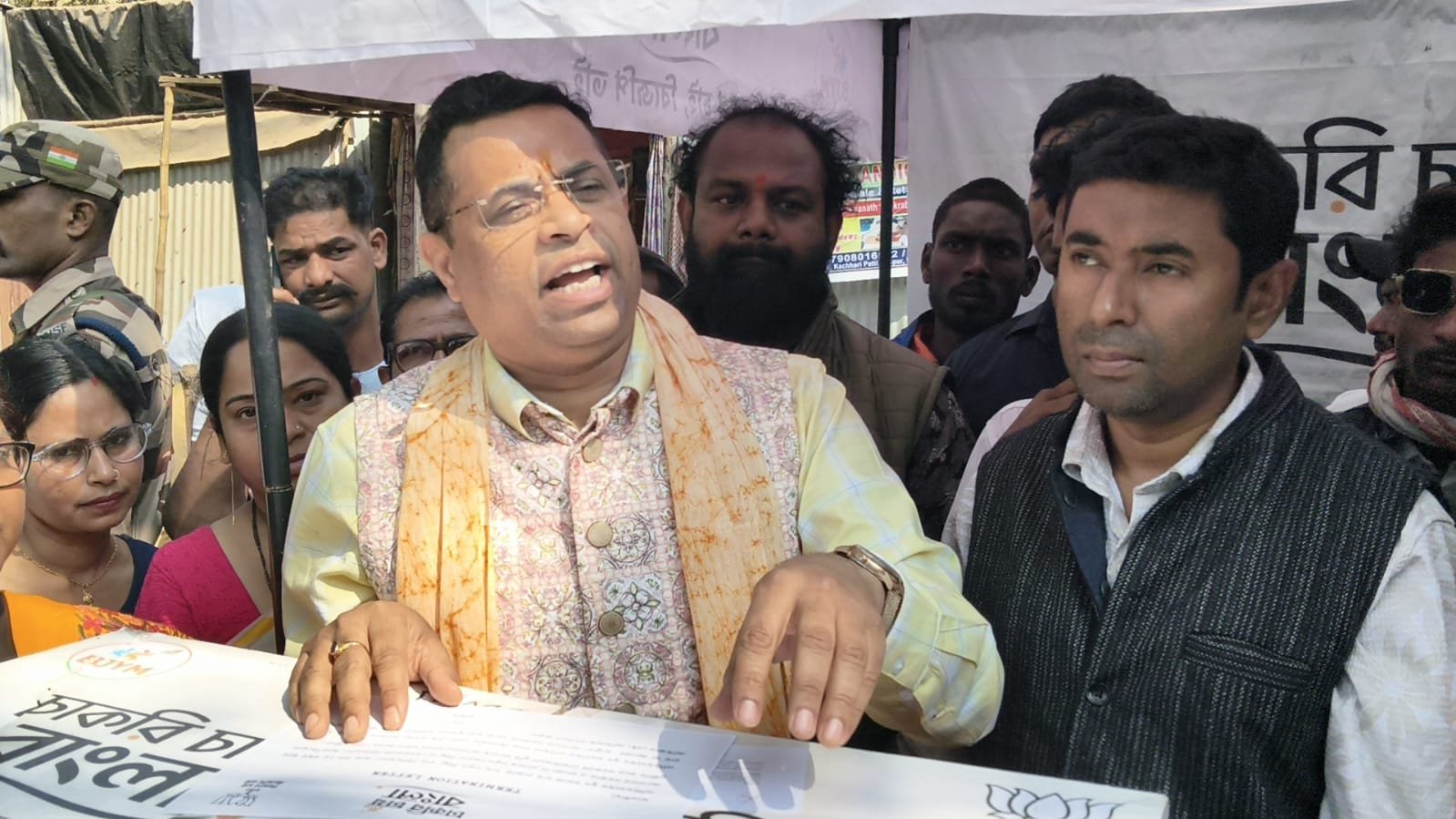বৃহস্পতিবার দুপুরে বোলপুরে আসেন বিষ্ণুপুরের বিজেপি সাংসদ সৌমিত্র খাঁ। শান্তিনিকেতনের রবীন্দ্র হস্তশিল্প বাজারে ‘চাকরি চায় বাংলা’ (বাংলা চাকরি চায়) অনুষ্ঠানে যোগ দেন তিনি। এই কর্মসূচির অংশ হিসেবে, বিজেপির যুব শাখা চাকরির দাবিতে মুখ্যমন্ত্রী মমতা বন্দ্যোপাধ্যায়ের কাছে ৫ লক্ষ চিঠি জমা দেওয়ার পরিকল্পনা নিয়েছে। অনুষ্ঠানে বক্তব্য রাখার সময় বিজেপি সাংসদ তৃণমূল নেতা অনুব্রত মণ্ডল, মন্ত্রী চন্দ্রনাথ সিনহা, জেলা পরিষদ প্রধান ফয়জুল হক ওরফে কাজল শেখের বিরুদ্ধে বিস্ফোরক অভিযোগ করেন। সরাসরি না বললেও বক্তব্যে তাঁর ইঙ্গিত ছিল অভিষেক বন্দ্যোপাধ্যায়ের দিকে।