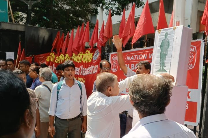 আমাদের ভারত, ১১ আগস্ট: ‘ইউনাইটেড ফোরাম অফ আইডিবিআই অফিসার্স অ্যান্ড এমপ্লয়িজ’এর পক্ষ থেকে সোমবার দেশব্যাপী আইডিবিআই ব্যাঙ্ক ধর্মঘট ডাকা হয়। এই ধর্মঘটকে সক্রিয় সমর্থন জানিয়ে শ্রমিক সংগঠন এআইইউটিইউসি অনুমোদিত ‘অল ইন্ডিয়া ব্যাঙ্ক এমপ্লয়িজ ইউনিটি ফোরামে’র পক্ষ থেকে রাজ্যের প্রায় প্রতিটি শাখার গেটে ধর্মঘটকে সফল করার আহ্বান জানিয়ে প্রচার এবং পিকেটিং করা হয়।