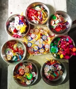 কচিকাচাঁদের মধ্যে কৃষ্ণা সিং, ময়না মুর্মু, দেবাশীষ মুর্মুদের কথায়, আজ এই কর্মশালাতে প্রায় ৬০০ রাখি তৈরি করেছি যা ঐক্যের বন্ধনের পাশাপাশি সচেতনতার বার্তাও ছড়িয়ে দেবে।