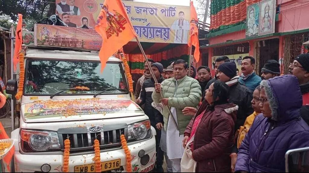রবিবার নিজের একাধিক সোশ্যাল মিডিয়া অ্যাকাউন্টে পোস্ট করে সুকান্ত মজুমদার লেখেন, মাহেন্দ্রক্ষণের অপেক্ষায়। আজ প্রভু শ্রীরামের সেবায় বালুরঘাট লোকসভা কেন্দ্রের সাংসদ হিসেবে দক্ষিণ দিনাজপুর জেলা থেকে অযোধ্যায় ১১০০ কেজি গোবিন্দভোগ চাল পাঠালাম। জয় শ্রী রাম। একটি ট্রাকে করে এই চাল পৌঁছে যাবে অযোধ্যায়। রবিবার বালুরঘাটে বিজেপির জেলা কার্যালয় অফিসের সামনে নারকেল ফাটিয়ে ও রামের ছবি অঙ্কিত বিশেষ ধ্বজা নাড়িয়ে এই সফরের সূচনা করেন সুকান্ত মজুমদার। এখানে সুকান্তবাবুর সঙ্গে ছিলেন বিজেপির স্থানীয় কর্মী সমর্থকরা।