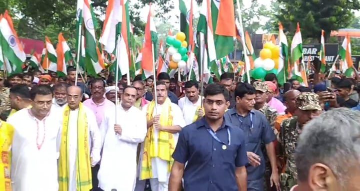 আজ ঝাড়গ্রামে আয়োজিত তিরঙ্গা যাত্রায় যোগ দেন বিরোধী দলনেতা শুভেন্দু অধিকারী। সেখান থেকে বক্তৃতায় তিনি মুখ্যমন্ত্রী মমতা বন্দ্যোপাধ্যায় ও তৃণমূল সরকারকে তীব্র আক্রমণ করেন। তিনি অভিযোগ করেন, ঝাড়গ্রামে মুখ্যমন্ত্রীর বাংলা ভাষা নিয়ে প্রতিবাদ মিছিলে বিদ্যাসাগরকে অপমান করা হয়েছে। মুখ্যমন্ত্রী চাকরি ও ডিএ বঞ্চনার দায় এড়াচ্ছেন। বিশ্ব আদিবাসী দিবসে মুখ্যমন্ত্রী আগেই অনুষ্ঠান করে চলে গিয়েছেন বলেও কটাক্ষ করেন তিনি।