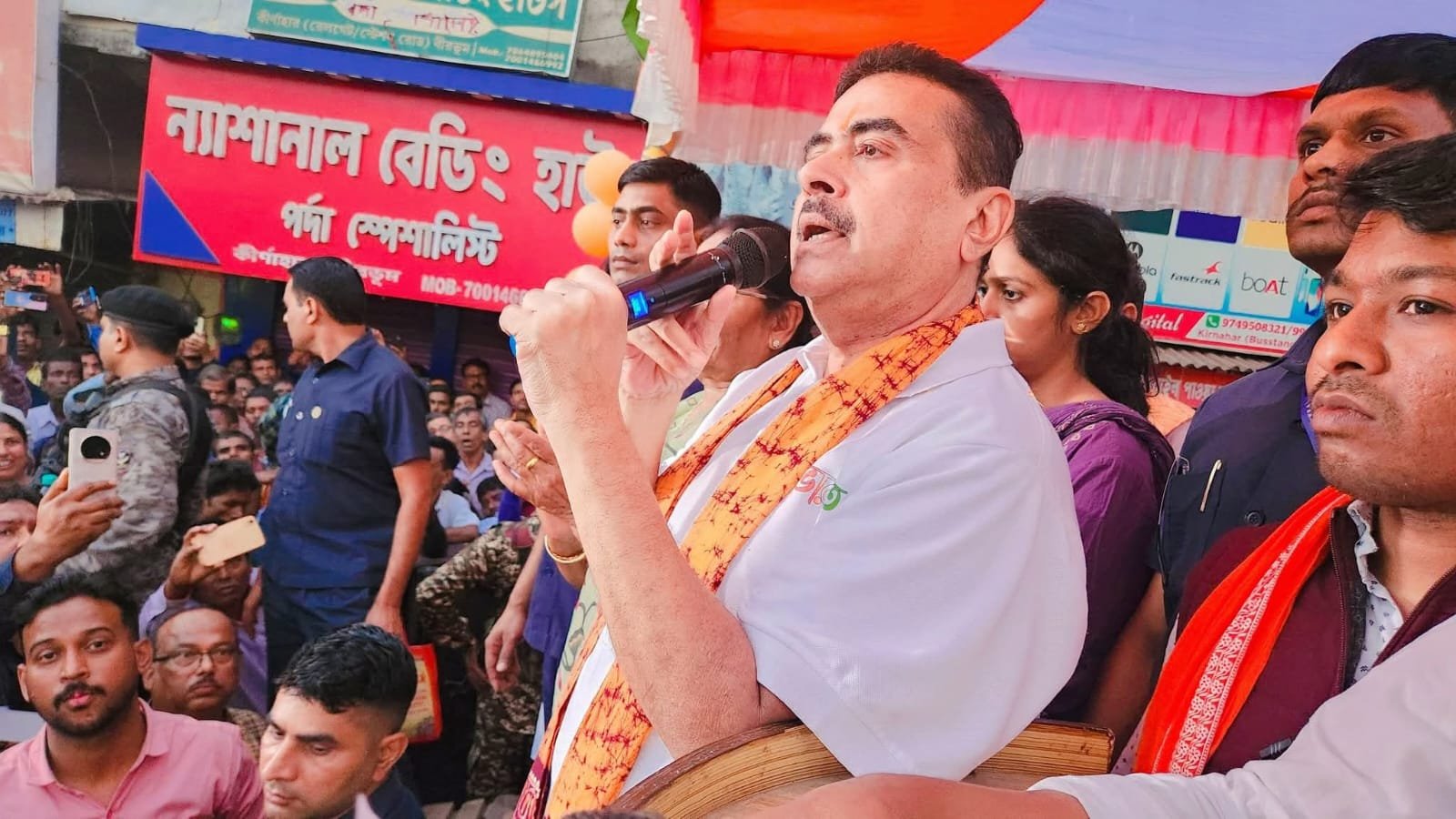 ভারতরত্ন সর্দার বল্লভভাই প্যাটেলের ১৫০তম জন্মজয়ন্তী উপলক্ষ্যে “এক ভারত আত্মনির্ভর ভারত” -এর লক্ষ্যে “একতা যাত্রা”য় যোগ দিতে মঙ্গলবার বীরভূমের কীর্ণাহারে আসেন শুভেন্দু অধিকারী। সঙ্গে ছিলেন দলের রাজ্য সাধারণ সম্পাদক জগন্নাথ চট্টোপাধ্যায়, বীরভূম ও বোলপুর সাংগঠনিক জেলা সভাপতি ধ্রুব সাহা এবং শ্যামাপদ মণ্ডল। প্রথমেই কির্ণাহার শহরে একটি শোভাযাত্রায় পা মেলান। কির্ণাহার ২ অঞ্চল অতিক্রম করার সময় তৃণমূলের কার্যালয় থেকে জয় বাংলা এবং চোর চোর স্লোগান দেওয়া হয়। যদিও সেদিকে কর্ণপাত করেননি শুভেন্দু অধিকারী।