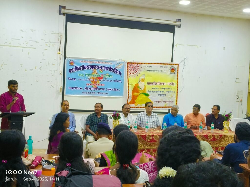 পার্থ খাঁড়া, আমাদের ভারত, মেদিনীপুর, ৪ সেপ্টেম্বর: মেদিনীপুর মহাবিদ্যালয়ের সংস্কৃত বিভাগ এবং সংস্কৃত ভারতী দক্ষিণ বঙ্গ-এর যৌথ উদ্যোগে আয়োজিত দশ দিনের সংস্কৃত ভাষণ শিবির আজ সমাপ্ত হলো। একইসঙ্গে মহাবিদ্যালয়ে মহা আড়ম্বরে পালিত হয় বিশ্ব সংস্কৃত দিবস।