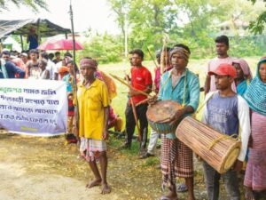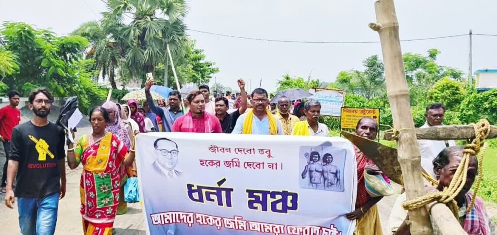 অন্যদিকে, শনিবার জমি ফেরত চেয়ে বর্ষায় চাষ করার দাবিতে লাঙল, তির-ধনুক নিয়ে পথে নামলেন জমিহারারা৷ সবুজপত্র আবাসন প্রকল্পের সামনেই বিক্ষোভ দেখান তাঁরা৷ পরিস্থিতি সামাল দিতে বিশাল পুলিশ বাহিনী মোতায়েন করা হয়৷ জমিহারাদের মধ্যে আশিস ঘাটোয়াল, পার্বতী রায়, বদি মুর্মু, পারুল রায়রা বলেন, “ছেলের মাথার ভয় দেখিয়ে ‘সবুজপত্র’ জমি নিয়ে নিয়েছিল৷ তারা বলতো “জমি দিবি নাকি ছেলের মাথা নিবি?” এখন আমরা আমাদের জমি ফেরত চাই৷ আমরা এই বর্ষায় চাষ করব৷ চাষ না করলে খাব কী?”