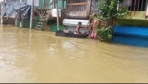 পার্থ খাঁড়া, আমাদের ভারত, পশ্চিম মেদিনীপুর, ২১ সেপ্টেম্বর: ঘাটালে ভয়াবহ বন্যা পরিস্থিতি রয়েছে বেশ কয়েকদিন ধরে। কিছু কিছু জায়গায় জল কমলেও বেশিরভাগ এলাকা এখনো জলের তলায়। গত পাঁচ দিন ধরে ঘাটাল থানা জলের তলায় রয়েছে। পুলিশ কর্মীদের অন্য জায়গায় স্থানান্তরিত করা হয়। সাধারণ মানুষের যাতে কোনো সমস্যা না হয় সে কথা মাথায় রেখে রাজ্য সরকারের তরফ থেকে সাধারণ মানুষের কাছে শুকনো খাবার ও ত্রাণের ব্যবস্থা করা হয়।