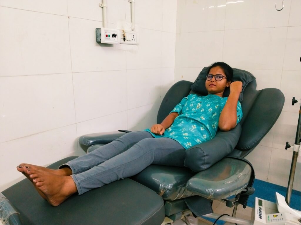 পার্থ খাঁড়া, আমাদের ভারত, ঝাড়গ্রাম, ১২ আগস্ট: হাসপাতালে চিকিৎসাধীন রোগীকে রক্ত দিয়ে প্রাণ বাঁচালেন হাসপাতালের নার্স। চিকিৎসাধীন রোগীর অনবরত রক্তক্ষরণ হয়ে চলেছে। ব্লাড গ্রুপ ‘ও’ নেগেটিভ। ঝাড়গ্রাম জেলার তিনটি ব্লাড সেন্টারের কোথাও ‘ও’ নেগেটিভ ব্লাড নেই। খুঁজে পাওয়া যাচ্ছে না ‘ও’ নেগেটিভ ব্লাডের ডোনার। এই অবস্থায় রোগীর জীবন বাঁচাতে রক্ত দিলেন ঝাড়গ্রাম গভর্মেন্ট মেডিক্যাল কলেজ ও হাসপাতালের নার্স মৌসুমী ওঝা।