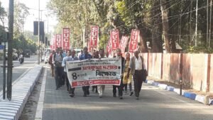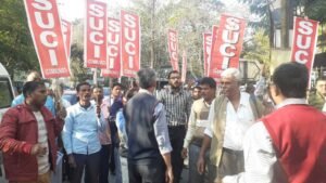 আমাদের ভারত, জলপাইগুড়ি, ৪ জানুয়ারি: রাজ্যজুড়ে দুনীতির প্রতিবাদ সহ একাধিক দাবি তুলে রাজ্যের সব জেলার পাশাপাশি জলপাইগুড়িতেও আন্দোলনে নামলো এসইউসিআই নেতা কর্মীরা। কোথাও মহকুমাশাসক দফতর, আবার কোথাও বিডিও অফিসে চলছে বিক্ষোভ। বৃহস্পতিবার জলপাইগুড়ির মহকুমা শাসকের দফতর অভিযানে সামিল হলেন এসইউসিআই নেতা কর্মীরা। সমাজ পাড়ায় জমায়েত হয়ে শহরজুড়ে বিক্ষোভ মিছিলের পর সদর মহকুমাশাসকের দফতরে হাজির হয় বিক্ষোভ মিছিলটি। যদিও মহকুমাশাসকের দফতরে ঢোকার আগেই পুলিশ আন্দোলনকারীদের ব্যারিকেড করে আটকে দেয়। এরপর সেখানে আন্দোলনকারীরা বিক্ষোভ অবস্থানে সামিল হয়।