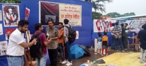 পার্থ খাঁড়া, আমাদের ভারত, পূর্ব মেদিনীপুর, ২২ আগস্ট: আর জি করের নারকীয় ঘটনার প্রতিবাদে রং এবং তুলি নিয়ে পথে নামল পূর্ব মেদিনীপুর জেলার চিত্রশিল্পীরা। গেটওয়ে মেছেদা বাস স্ট্যান্ড সন্নিহিত শহিদ ক্ষুদিরাম মূর্তির পাদদেশে আজ অর্ধশতাধিক চিত্রশিল্পীরা পথে নেমে রং তুলির মধ্য দিয়ে তাদের প্রতিবাদ জানায়। নন্দলাল বসু মেমোরিয়াল স্কুলের ছাত্রছাত্রীরা শিল্প ভাষা সংস্থা ও পূর্ব মেদিনীপুর জেলা আর্টিস্ট ফোরামের পক্ষ থেকে এই কর্মসূচি সংগঠিত হয়। চিত্রশিল্পী আর্ট কলেজের ছাত্র-ছাত্রীরা এবং বিভিন্ন কলেজের আর্টের অধ্যাপক এই কর্মসূচিতে ছবি এঁকে গান এবং বক্তব্যের মধ্যে দিয়ে কর্মসূচিতে সামিল হয়।