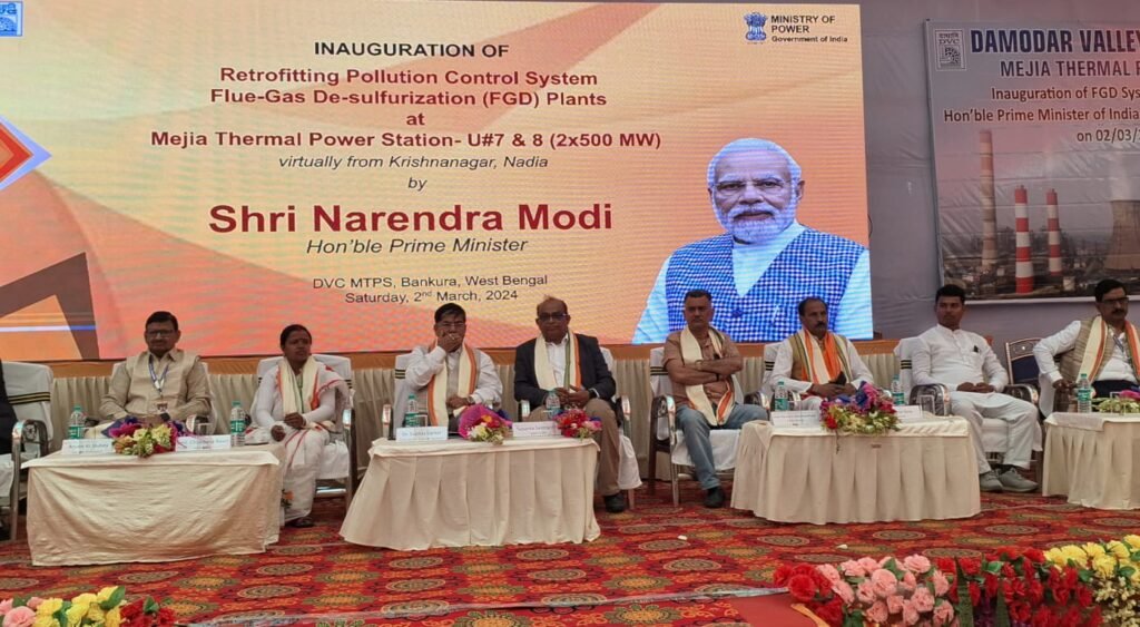 সোমনাথ বরাট, আমাদের ভারত, বাঁকুড়া, ২ মার্চ: মেজিয়া তাপবিদ্যুৎ প্রকল্পের ৭ ও ৮ নম্বর ইউনিটের দূষণ রোধে অত্যাধুনিক প্রযুক্তির ফ্লু গ্যাস ডি-সালফারাইজেশন ইউনিটের উদ্বোধন করলেন ভারতের প্রধানমন্ত্রী নরেন্দ্র মোদী। আজ সকাল সাড়ে ১০টায় নদিয়ার কৃষ্ণনগর থেকে ভার্চুয়ালি এই প্রজেক্টের উদ্বোধন করে প্রধানমন্ত্রী বলেন, ডিভিসি ভারতবর্ষের জাতীর সেবায় নিয়োজিত অন্যতম সংস্থা। একই সাথে এদিন তিনি ডিভিসির রঘুনাথপুর বিদ্যুৎ প্রকল্পের দ্বিতীয় পর্যায়ের ১২৬০ মেগাওয়াটের সুপার ক্রিটিক্যাল দুটি ইউনিটেরও উদ্বোধন করেন। এদিন মেজিয়া বিদ্যুৎ প্রকল্পের কর্মী ও আধিকারিকরা গর্বের এই প্রজেক্ট নিয়ে উল্লাস প্রকাশ করেন।