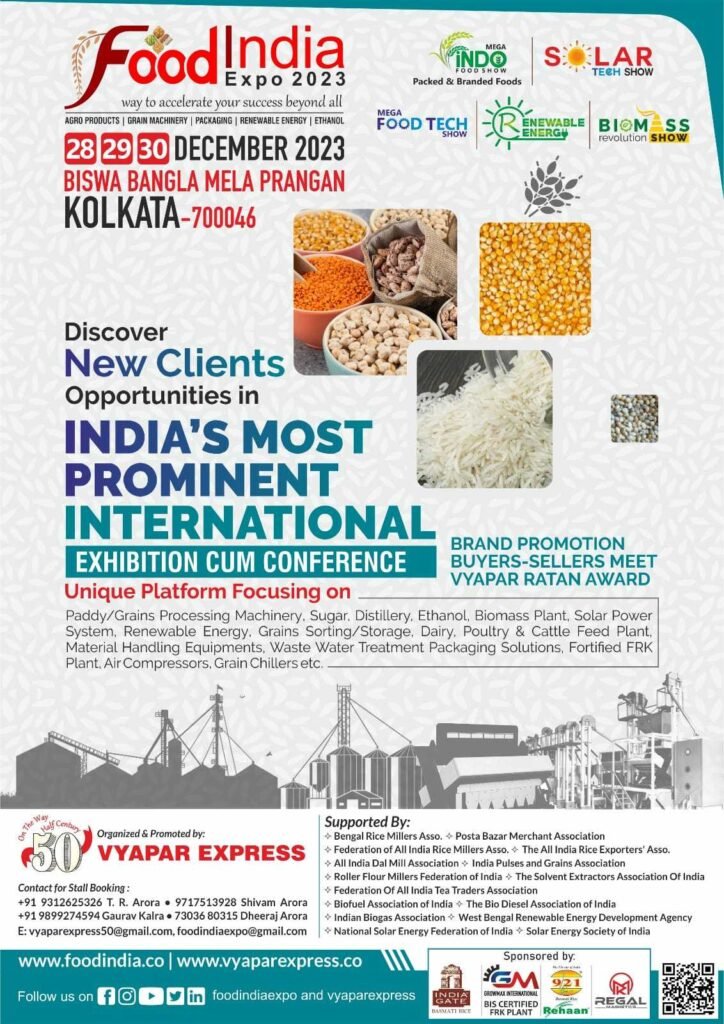 আমাদের ভারত, ২৫ ডিসেম্বর: ব্যবসা বিষয়ক সংবাদপত্র ‘ব্যাপার এক্সপ্রেস’’- এর উদ্যোগে কলকাতার বিশ্ববাংলা মেলা প্রাঙ্গণে শুরু হচ্ছে তিন দিনের ফুড ইন্ডিয়া এক্সপো-২০২৩। আগামী ২৮, ২৯ ও ৩০ ডিসেম্বর তিন দিন সকাল দশটা থেকে সন্ধে পর্যন্ত এই মেলা খোলা থাকবে সাধারণ মানুষের জন্য। কোনও প্রবেশ মূল্য লাগছে না।