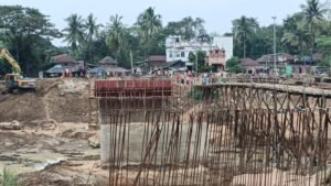 পার্থ খাঁড়া, আমাদের ভারত, পশ্চিম মেদিনীপুর, ২ ডিসেম্বর: পশ্চিম মেদিনীপুরের চন্দ্রকোনা- ১ ব্লকের ৬- এর ২ মনোহরপুর অঞ্চলের হলাঘাট গ্ৰামে দীর্ঘ দিন ধরে বাঁশের সাঁকো রয়েছে। বন্যার সময় প্রতি বছর ঐ বাঁশের সাঁকো ভেঙ্গে যায়। পঁচিশ থেকে ত্রিরিশটি গ্ৰামের একমাত্র যোগাযোগের মাধ্যম ঐ বাঁশের সাঁকো। বর্তমানে রাজ্য সরকারের উদ্যোগে শুরু হয়েছে কংক্রিট ব্রিজের কাজ। আর সেই ব্রিজের কাজে গাফিলতির অভিযোগ তুলে স্থানীয় মানুষজন বিক্ষোভ শুরু করেন।