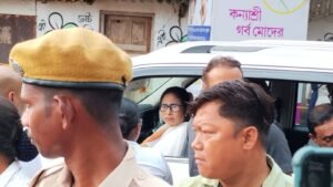 পার্থ খাঁড়া, আমাদের ভারত, ঝাড়গ্রাম, ৮ আগস্ট: বৃহস্পতিবার বিকেলে ঝাড়গ্রাম পৌছলেন মুখ্যমন্ত্রী মমতা বন্দ্যোপাধ্যায়। শুক্রবার ৯ আগস্ট ঝাড়গ্রাম স্টেডিয়ামে বিশ্ব আদিবাসী দিবসের অনুষ্ঠানে যোগ দেবেন তিনি। এদিন ঝাড়গ্রাম ঢোকার মুখে ঝাড়গ্রাম শ্রীরামকৃষ্ণ সারদাপীঠ কন্যা গুরুকুলের সন্ন্যাসী ও শিক্ষিকাদের দেখে গাড়ি থামিয়ে তাদের সঙ্গে কথা বলেন তিনি। প্রথমেই শিক্ষিকাদের জিজ্ঞেস করেন আজ স্কুল ছুটি তো? উত্তরে শিক্ষিকারা জানান, হ্যাঁ মিড ডে মিল খাইয়ে স্কুল ছুটি দিয়ে দেওয়া হয়েছে। তারপর তারা কেমন আছে সেই বিষয়ে খোঁজখবর নেন মুখ্যমন্ত্রী। স্কুলের পক্ষ থেকে একটি দাবি পত্রও তুলে দেওয়া হয় মুখ্যমন্ত্রীর হাতে। বিষয়টি দ্রুত দেখার আশ্বাস দেন তিনি। তারপর সেখান থেকে রাজবাড়ি টুরিস্ট কমপ্লেক্সের মুখ্যমন্ত্রীর গাড়ি যাওয়ার সময় টুরিস্ট কমপ্লেক্স ঢোকার মুখে জেলা তৃণমূলের নেতৃত্বদের দেখে দাঁড়িয়ে পড়েন মুখ্যমন্ত্রী।