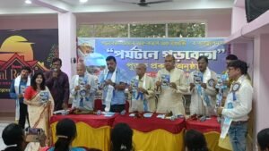 পার্থ খাঁড়া, পশ্চিম মেদিনীপুর, ৯ নভেম্বর: পর্যটকদের আকর্ষণ করতে শনিবারে বিকেলে পশ্চিম মেদিনীপুর জেলার গড়বেতা শহরের একটি বেসরকারি আবাসনে গড়বেতা চেম্বার অফ কমার্স অ্যান্ড ইন্ডাস্ট্রির ব্যবস্থাপনায় আনুষ্ঠানিকভাবে প্রকাশ করা হলো “পর্যটনে গড়বেতা” পুস্তক। এই পুস্তকের লেখিকা হলেন গড়বেতা শহরের বাসিন্দা দোলনচাঁপা তেওয়ারি দে। যেখানে বাংলার গ্র্যান্ড ক্যানিয়ন অর্থাৎ গড়বেতার গনগনি সহ গড়বেতা শহরের পার্শ্ববর্তী এলাকার বিভিন্ন ঐতিহ্যবাহী মন্দির সহ একাধিক পর্যটন কেন্দ্রের বিভিন্ন বিষয় তুলে ধরা হয়েছে। পাশাপাশি শালগাছে মোড়া শহরের পার্শ্ববর্তী এলাকার গল্প তুলে ধরা হয়েছে। তুলে ধরা হয়েছে হাতি পারাপারের বিভিন্ন স্থান।